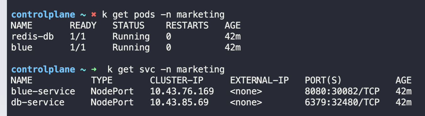 Q6. What DNS name should the Blue application use to access the database db-service in its own namespace - marketing?