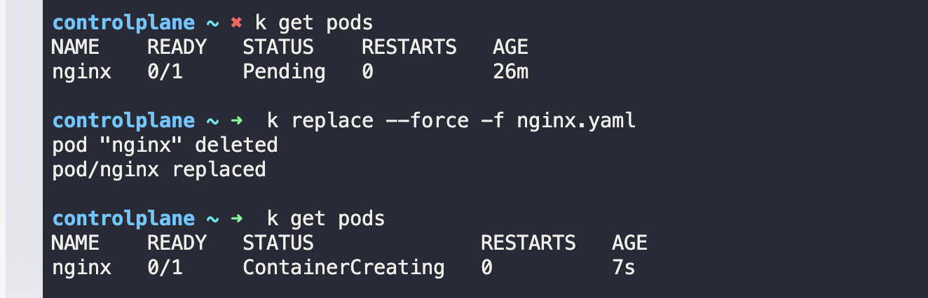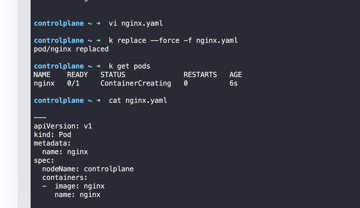 controlplane ~ ➜ k replace --force -f nginx.yaml