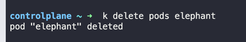 Q7. Delete the elephant Pod. Once deleted, wait for the pod to fully terminate.