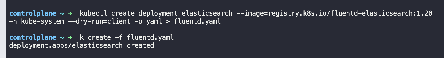kubectl create deployment elasticsearch --image=registry.k8s.io/fluentd-elasticsearch:1.20 \