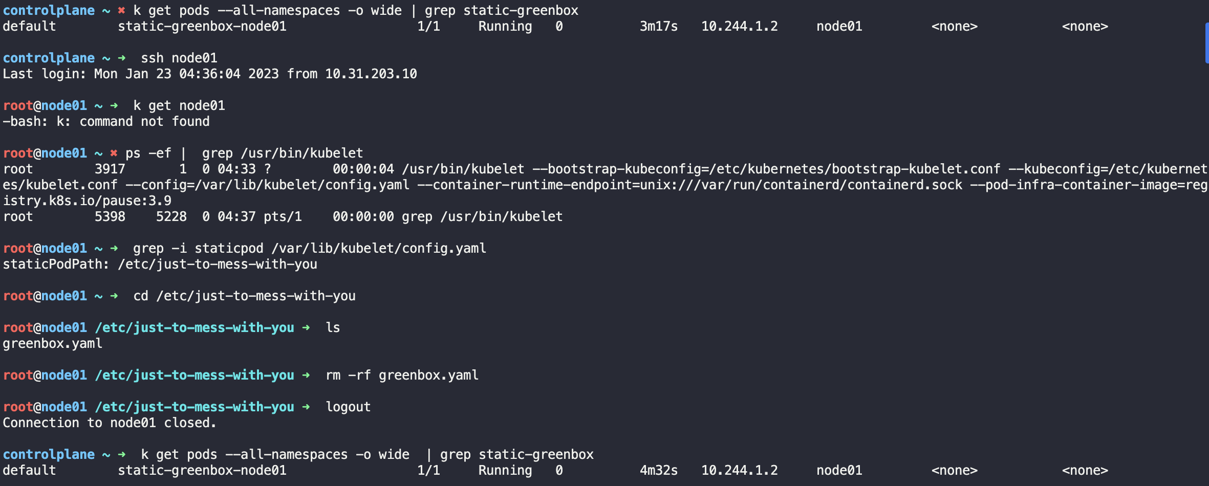 cd /etc/just-to-mess-with-you # node01 $ rm -rf /etc/just-to-mess-with-you/greenbox.yaml