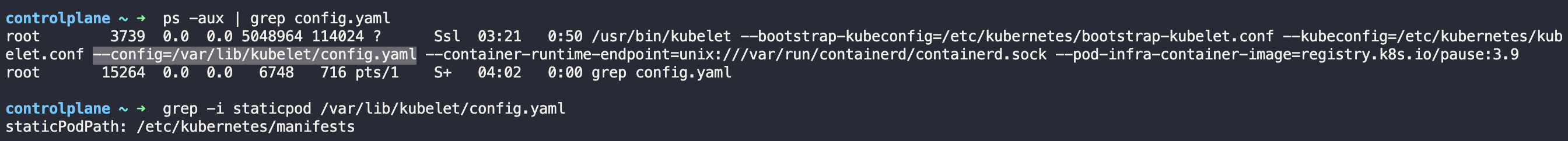 cat /var/lib/kubelet/config.yaml # grep staticPodPath /var/lib/kubelet/config.yaml