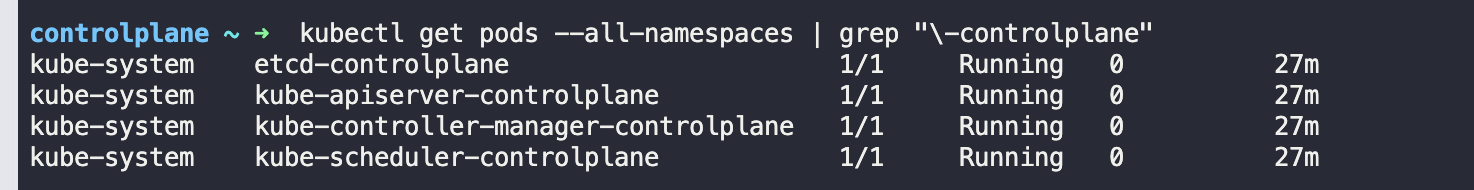 kubectl get pods --all-namespaces | grep "\-controlplane"