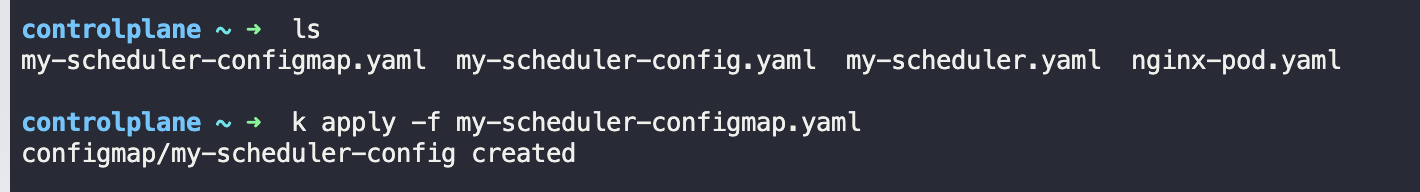 Q4. Let's create a configmap that the new scheduler will employ using the concept of ConfigMap as a volume. We have already given a configMap definition file called my-scheduler-configmap.yaml at /root/ path that will create a configmap with name my-scheduler-config using the content of file /root/my-scheduler-config.yaml.
