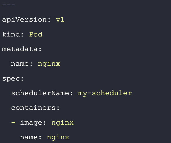Q6. A POD definition file is given. Use it to create a POD with the new custom scheduler. File is located at /root/nginx-pod.yaml