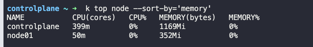 k top node --sort-by='memory'