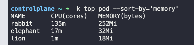 k top pod --sort-by='memory'