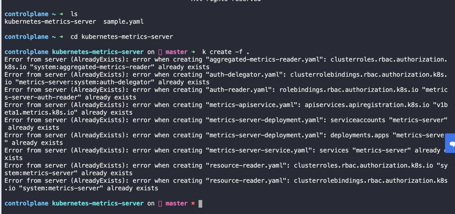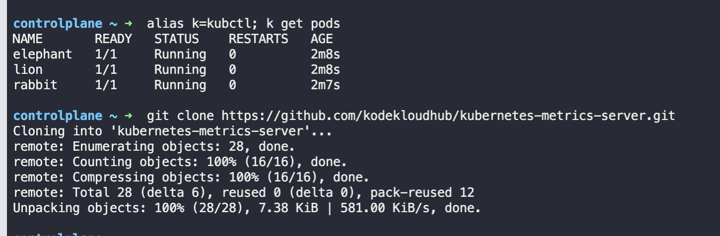 Q3. Deploy the metrics-server by creating all the components downloaded. Run the kubectl create -f . command from within the downloaded repository.