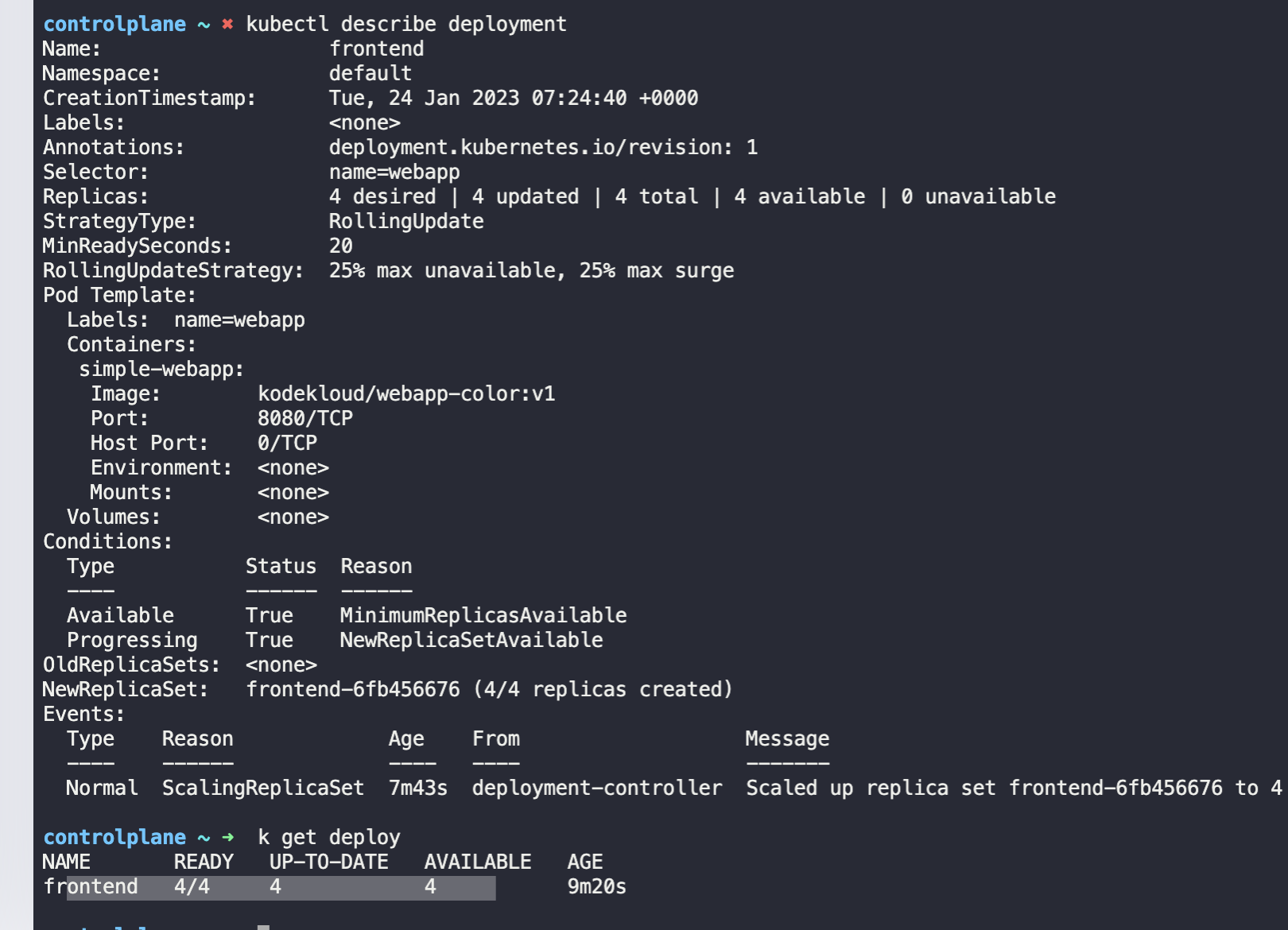 k describe deployment
