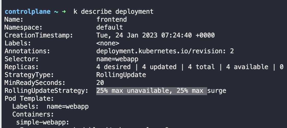 pod 개수가 4개인데 max unavailabledl 25%이니 1개이다.