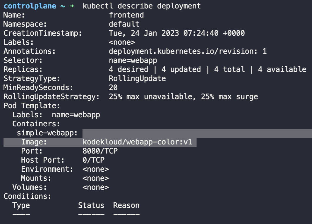 # Deployment Image: kodekloud/webapp-color:v3 변경