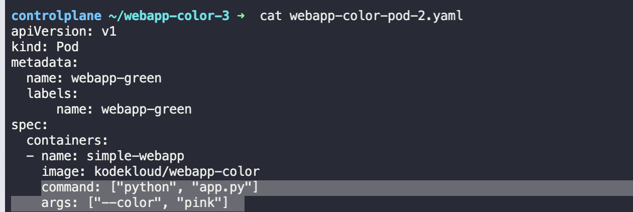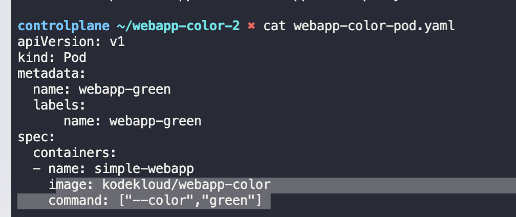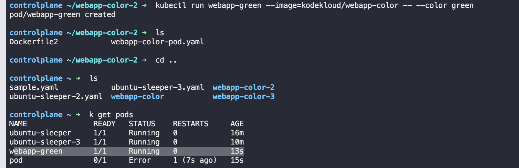 kubectl run webapp-green --image=kodekloud/webapp-color -- --color green