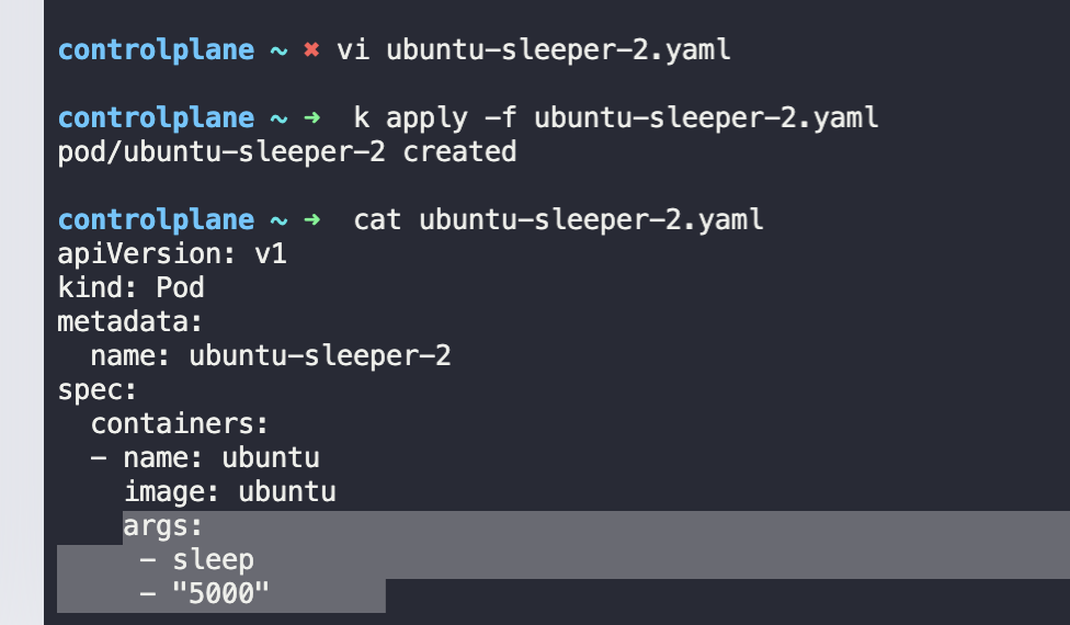 Q3. Create a pod with the ubuntu image to run a container to sleep for 5000 seconds. Modify the file ubuntu-sleeper-2.yaml.