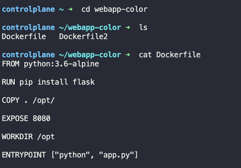 Q8. Inspect the two files under directory webapp-color-2. What command is run at container startup?