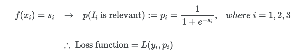 n개의 유저에 대해서 각 item에 대한 m개의 feaure가 정해지고 n개의 relevance score로 학습 데이터를 생성하게 된다. 이때 학습 시킨 모델에 테스트 데이터를 넣어 relevance score를 예측하게 된다. 예측값의 정의에 따라 랭킹이 결정 되기 때문에, learning to rank에서 가장 중요한 점은 어떠한 손실함수(loss function)를 사용하여 모델을 학습시키는가가 된다.