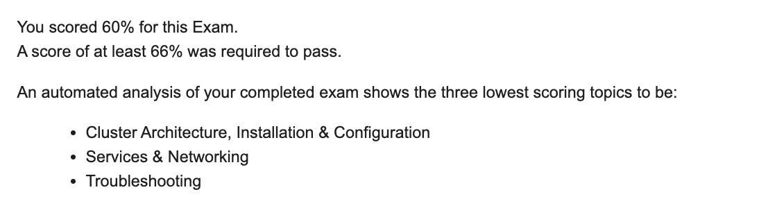 또 어떻게든 결제만 해놓으면 그래도 해내기는 하는구나라는 근거 없는 자신감이 증폭되어 더 대문자 P가 되게 생겼다ㅎㅎ ㅠㅠ 물론 cka에는 실습 +오픈북 시험이라서 그런지 나에게 매우 잘맞는 시험 유형이라 벼락치기가 성공했던 것 같지만은 (시험 2번 본거 치고 74점으로 합격한거라 ㅎㅎ 거의 턱걸이 합격 점수 하하)