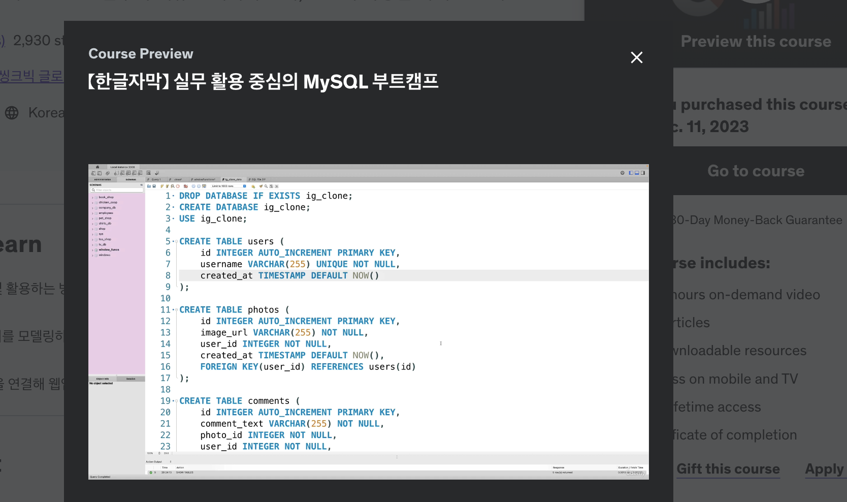 【한글자막】 실무 활용 중심의 MySQL 부트캠프를 선택하여 수강하였습니다.