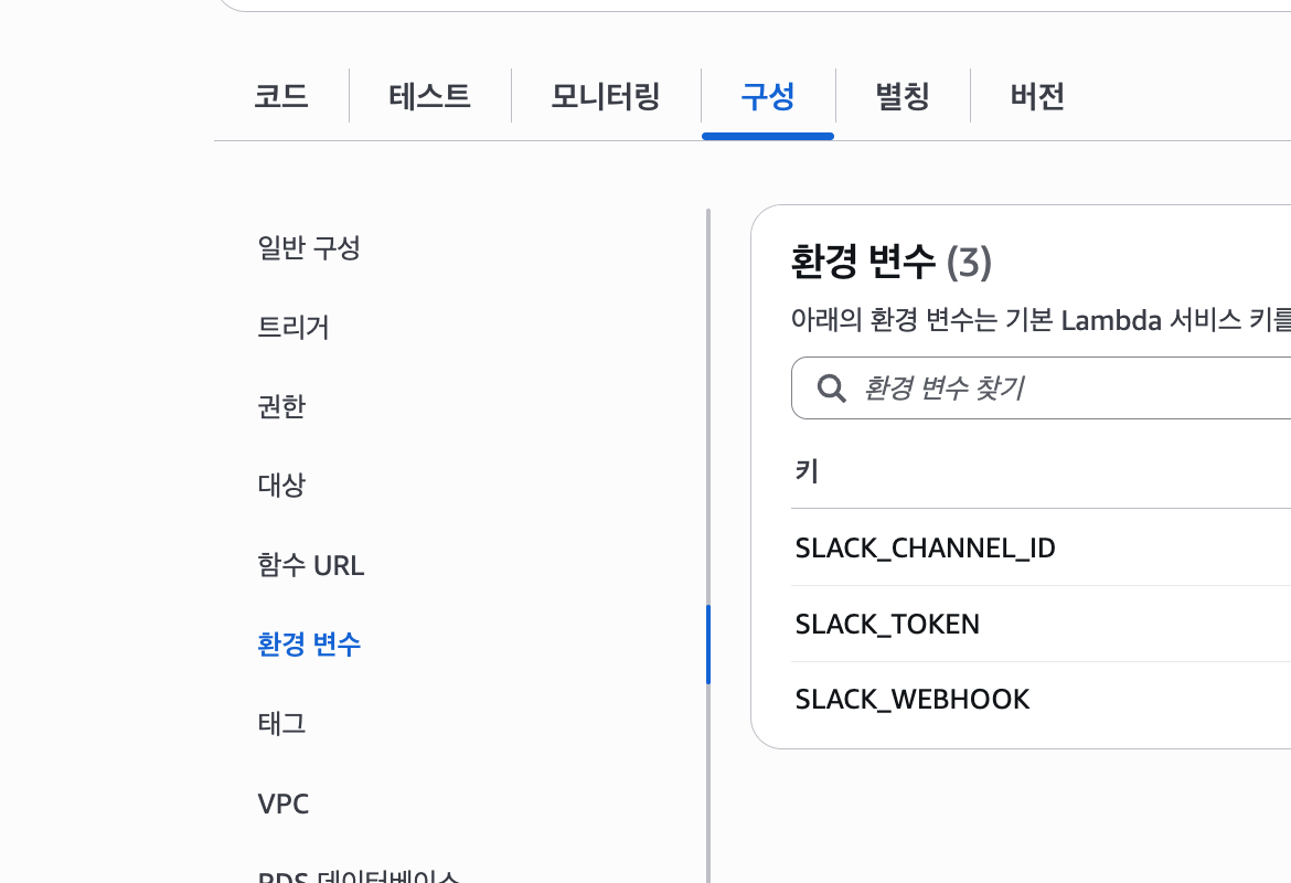 2. Lambda 함수에 설정할 것 (환경 변수 등록)