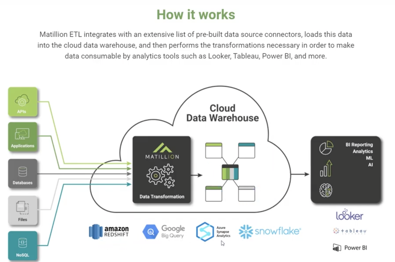 matillion data loader는 간단하게 다양한 데이터 소스에서 데이터를 수집해 우리가 사용하는 클라우드 기반의 데이터 웨어하우스인 빅쿼리, 스노우 플레이크 등등에 올려주는 작업만 데이터 제한 없이 무료로 제공한다!