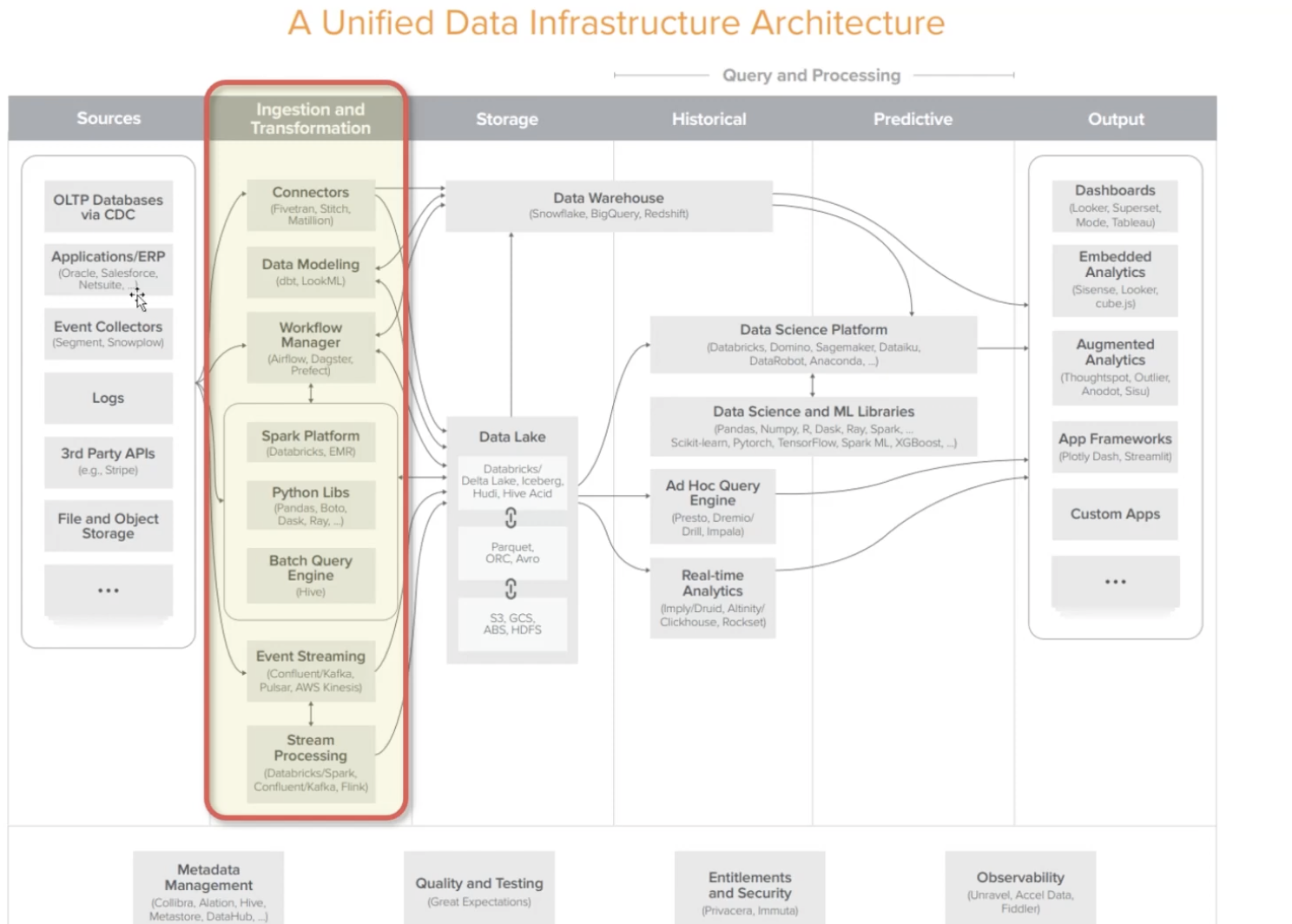 - source에서 발생하는 데이터들을 연결해서 data warehouse, data lake로 보낸다.