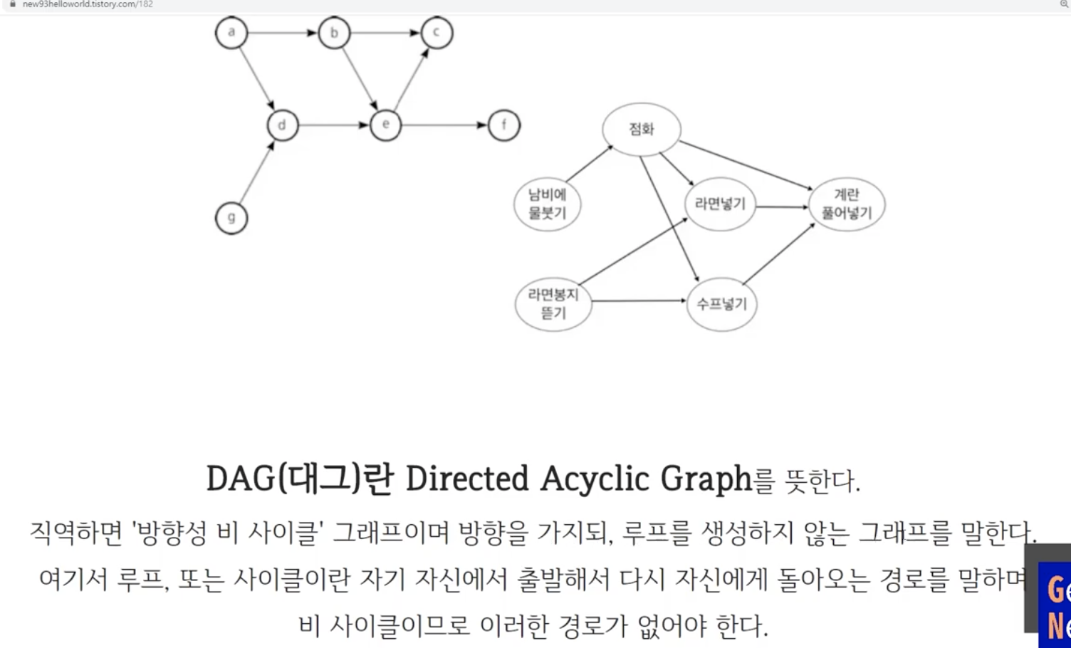 DAGs: 방향성을 가지지만 비순환하는 그래프이다.