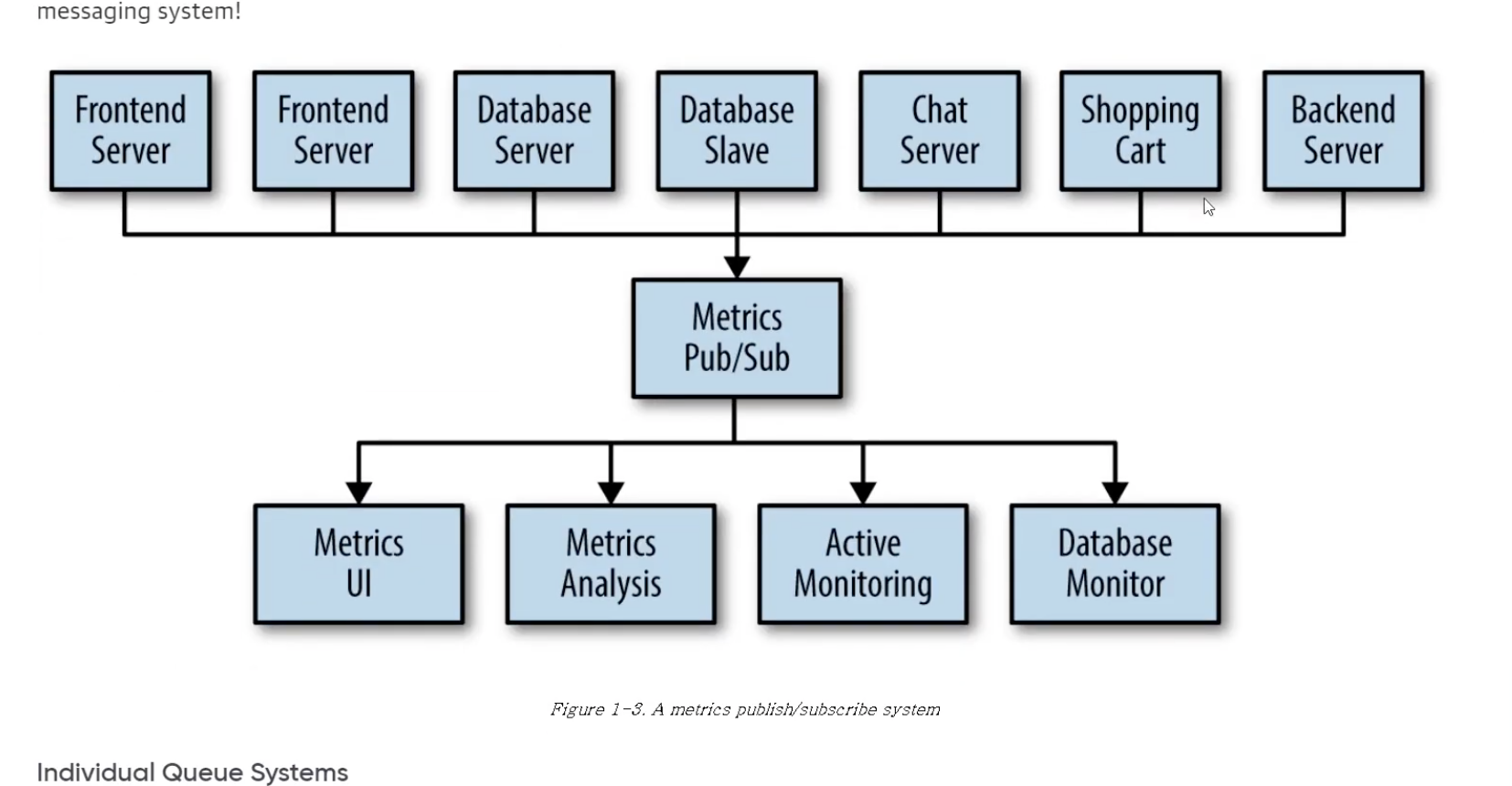 예) 클릭스트리밍: 사용자가 이벤트 페이지에서 클릭하는 것, 사용자들이 페이지에서 클릭할때마다 지표를 서버가 수집한다. 이 프론트앤드 서버, 데이터베이스 서버, 쇼핑 카트, 챗서버 등등 각각 UI, Monitor 도구에 직접 연결하다보면 연결할게 많고 시스템이 복잡해져서 metrics Pub/Sub 하고 있는 걸 중앙에 만듦.