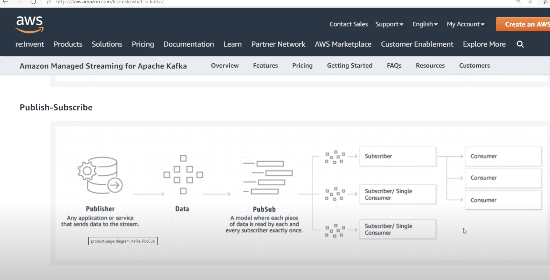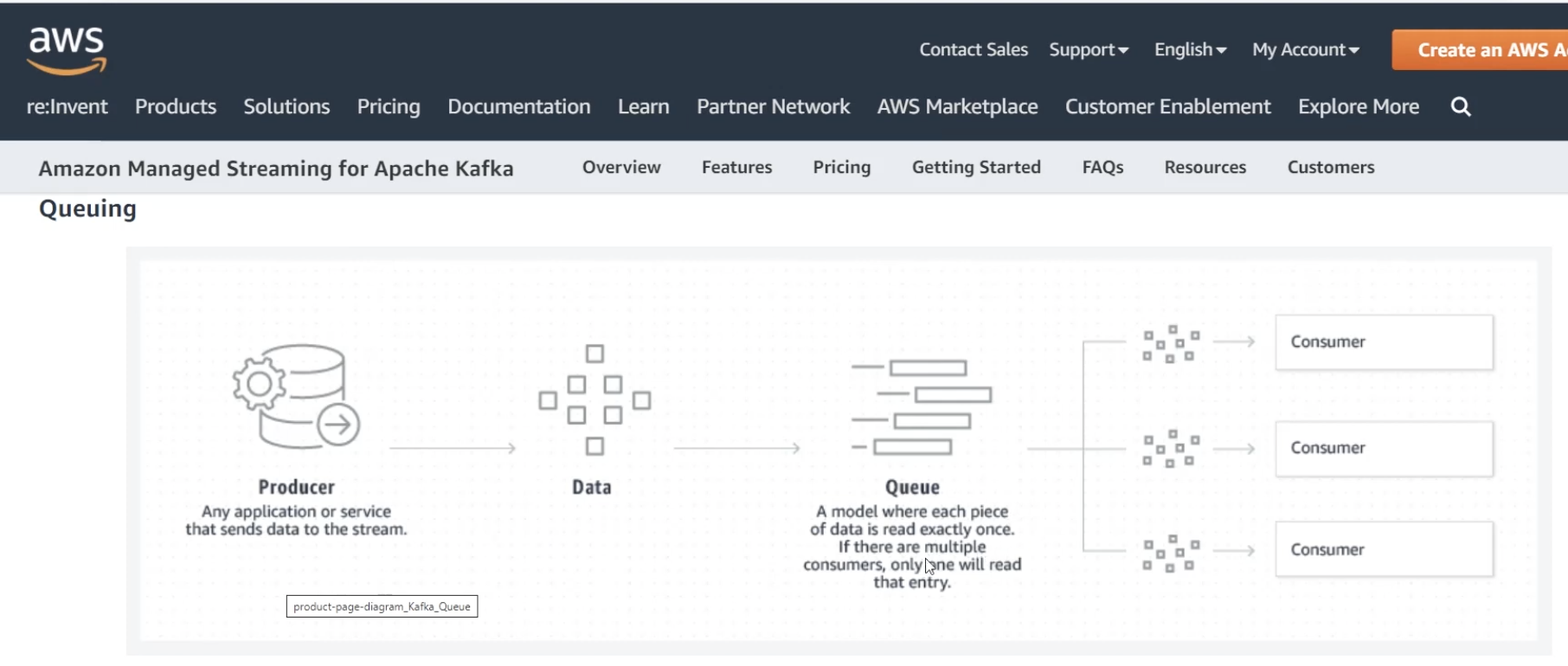 producer가 데이터를 던지면 queue에다가 넣어놓고, 이 큐를 가져가는 consumer가 1번만 읽어가야되기 떄문에, 데이터 큐처리하는 모델이 1개있다. 데이터가 들어오면 여러사의 consumer가 있고 이걸 정확히 1번만 읽어서 처리