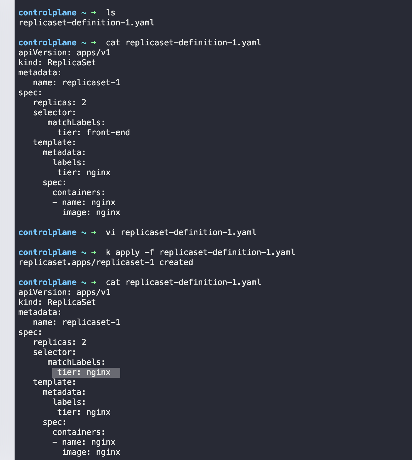 Q5. A ReplicaSet definition file is given replicaset-definition-1.yaml. Try to create the replicaset. There is an issue with the file. Try to fix it.