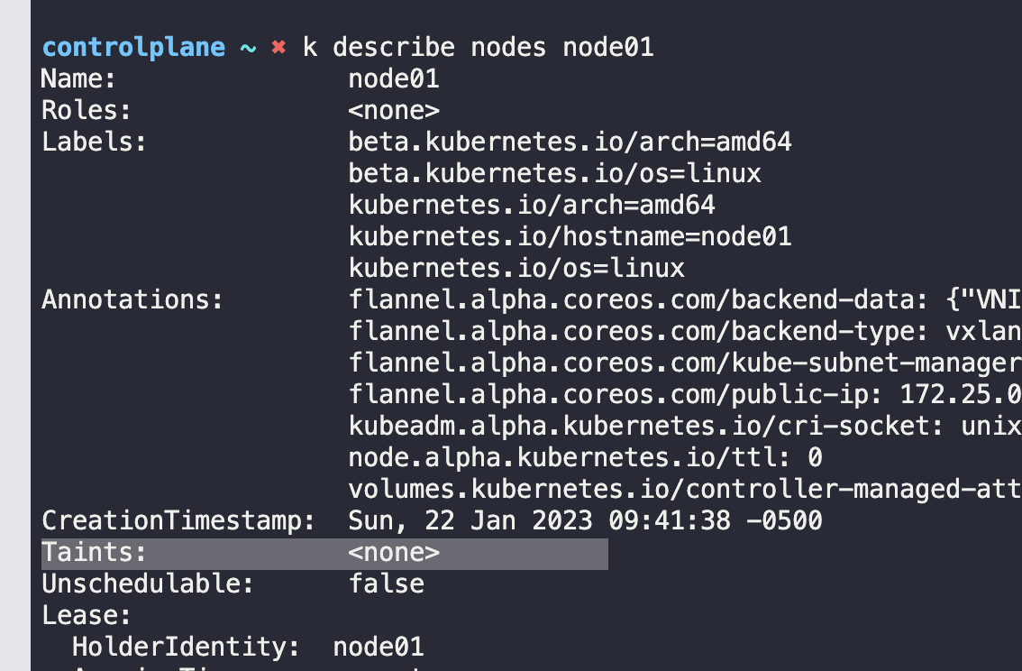 kubectl describe node node01 | grep -i taints
